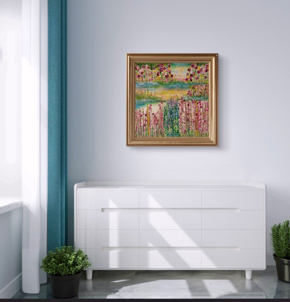Through vibrant color, abstract floral forms, and luminous light, the painting invites the viewer to pause, feel uplifted, and remember the small, transformative moments that sustain us. It is for collectors who cherish optimism, personal storytelling, and artwork that radiates joy and promise.