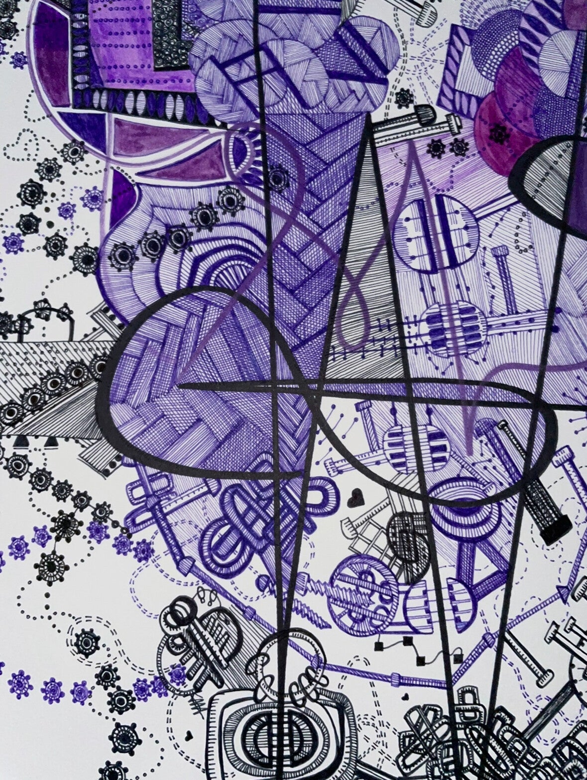 Fragile is an intricate abstract drawing in shades of purple and black, exploring the delicate and vulnerable nature of the human soul. Inspired by the timeless reflections of Sting’s song, this work meditates on the paradox of human strength and vulnerability-how even the strongest among us carry fragile, tender hearts beneath the surface.